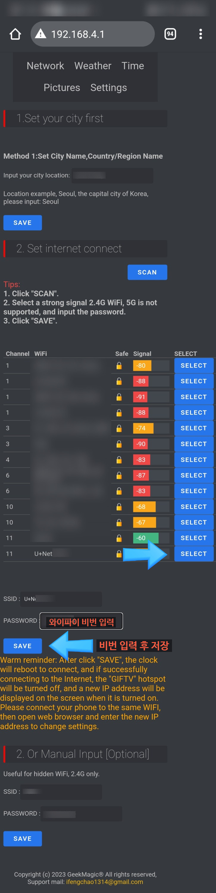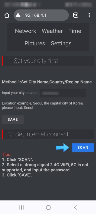 2๋ฒ์งธ ํญ๋ชฉ์ธ http://192.168.4.1 ์ ์ ๋ ฅํฉ๋๋ค.