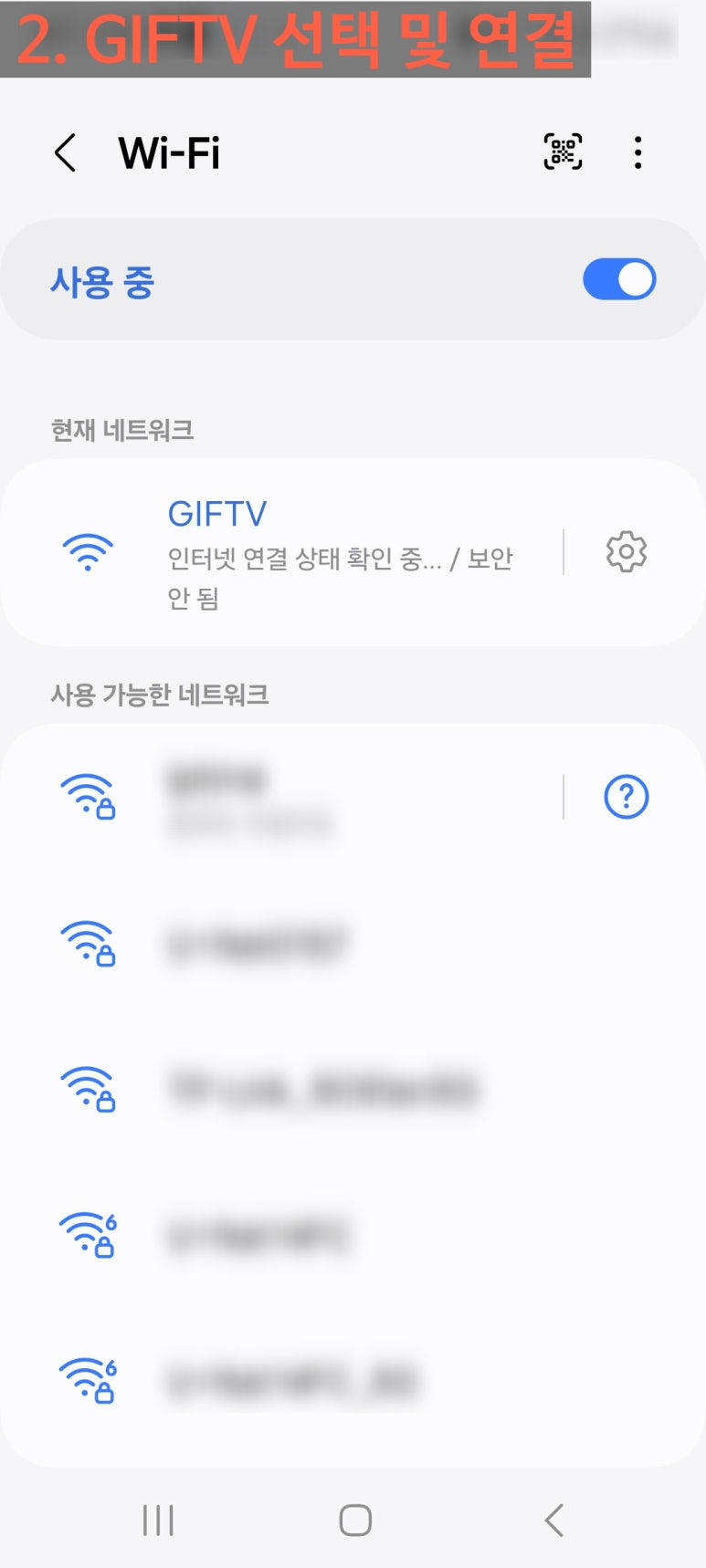 1. ํ๋ฉด์ ๋ณด์ด๋ GIFTV ์์ดํ์ด ์ ํ ํ ์ฐ๊ฒฐ