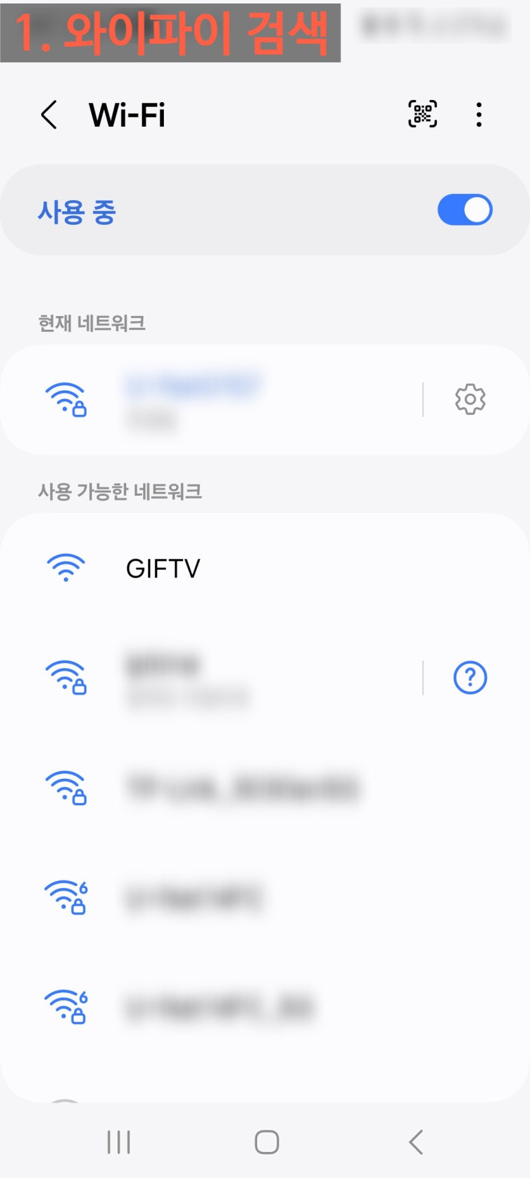 3. 2๋ฒ ํญ๋ชฉ์ธ ์ธํฐ๋ท ์ฐ๊ฒฐ ๋ถ๋ถ์์ ๋ด๊ฐ ์ฌ์ฉ์ค์ธ ์์ดํ์ด ์ ํ ๋ฐ ๋น๋ฐ๋ฒํธ